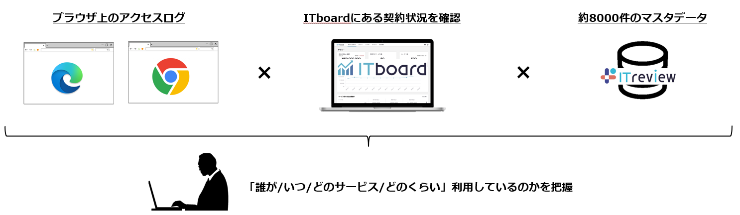 「ITboard 」は、さまざまなSaaSと連携することで社内のSaaSを可視化し、セキュリティリスクを低減。無駄なコストを削減し、棚卸しなどの作業を効率化できるSaaS管理プラットフォームです。